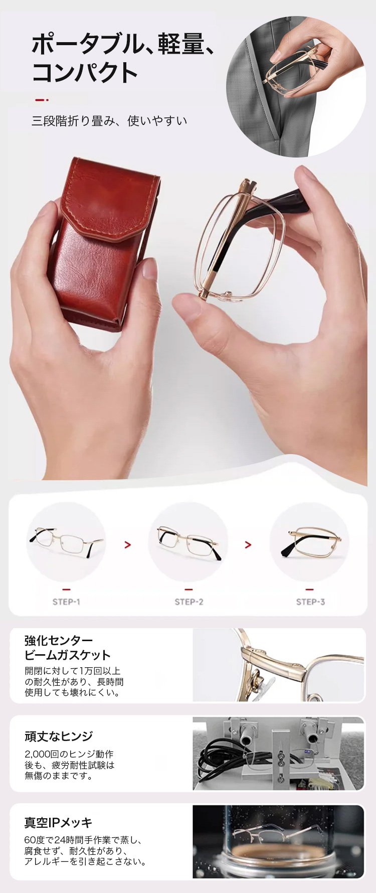 【176年の歴史を持つドイツの眼鏡店から】遠近両用累進多焦点折りたたみ式ブルーライトカット変色老眼鏡✨紫外線に当たると自動的に色が変わり、目を保護する