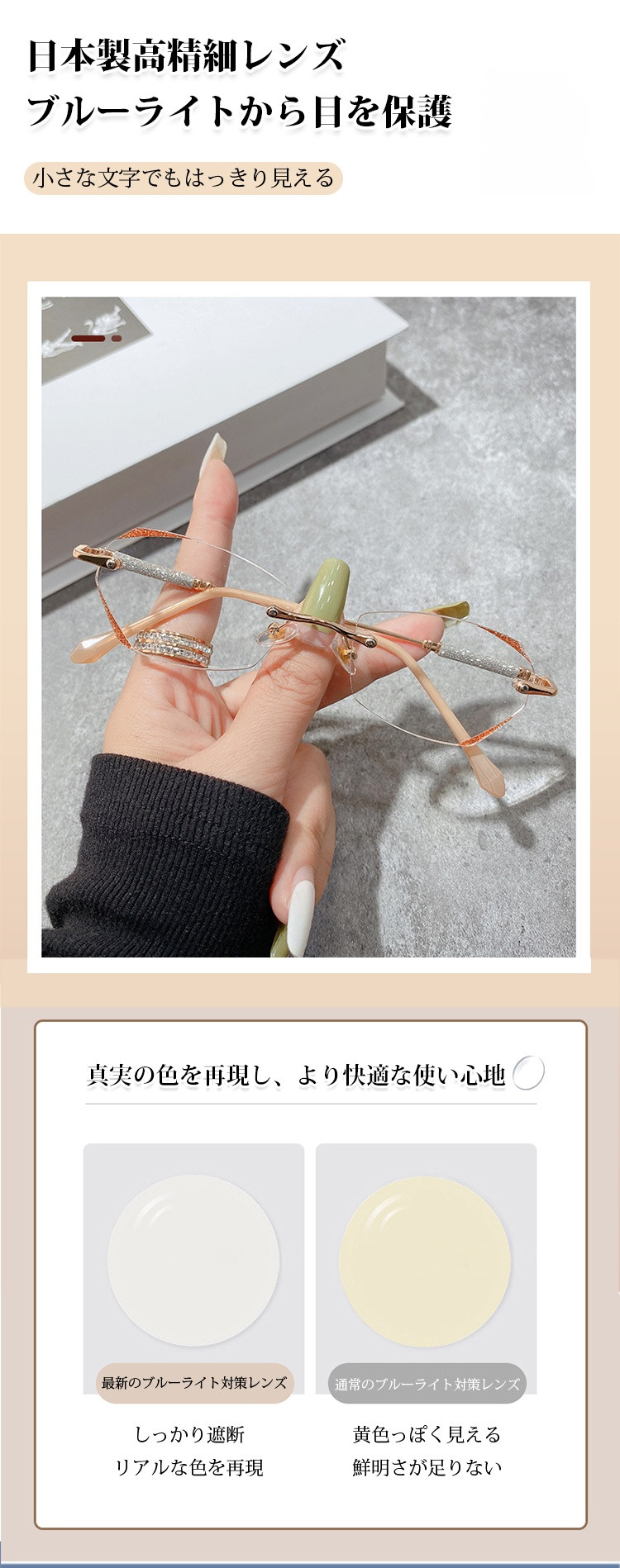 クリアなレンズとダイヤモンド縁取りの組み合わせ