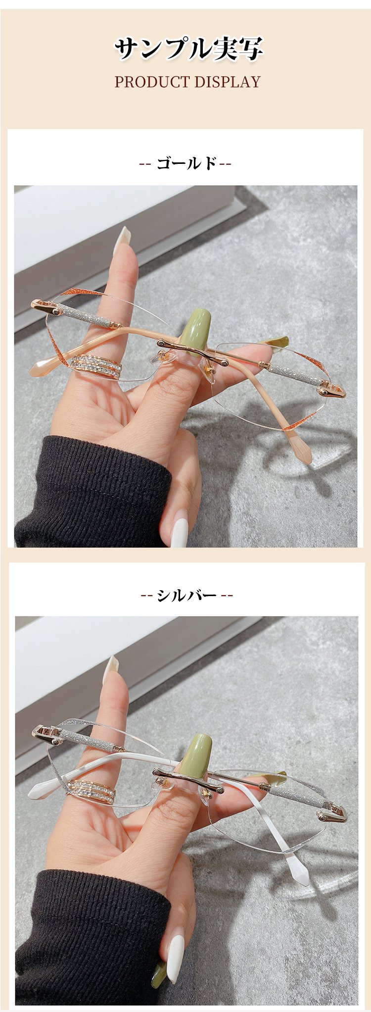 ダイヤモンド縁取りが輝く老眼鏡のアップ画像