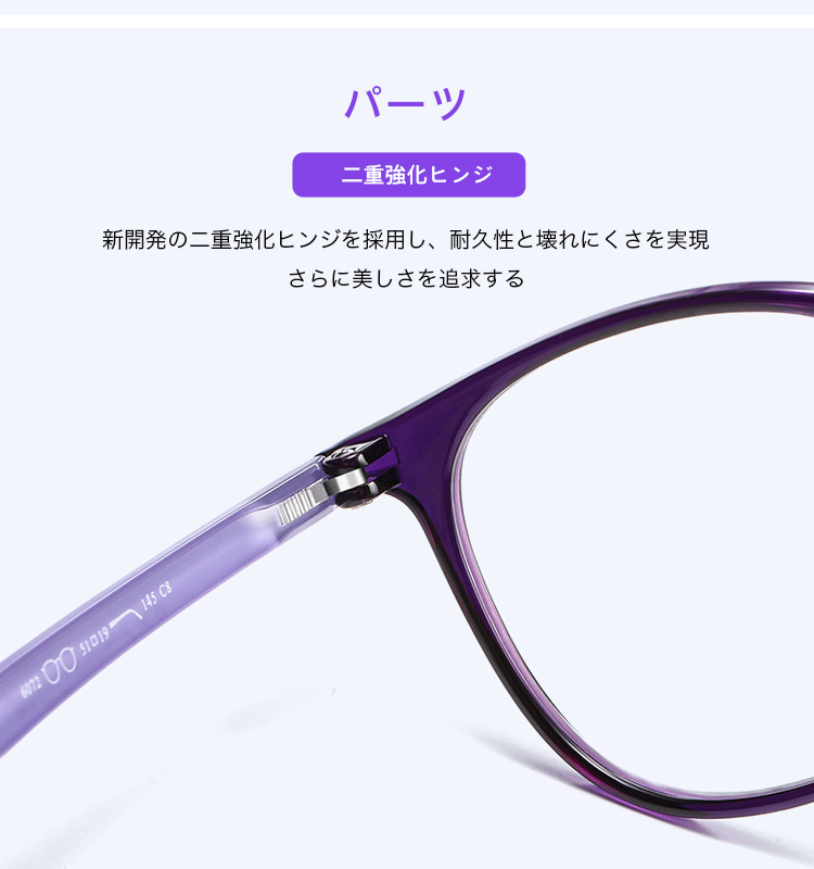 軽量設計のブルーライトカット老眼鏡の側面写真