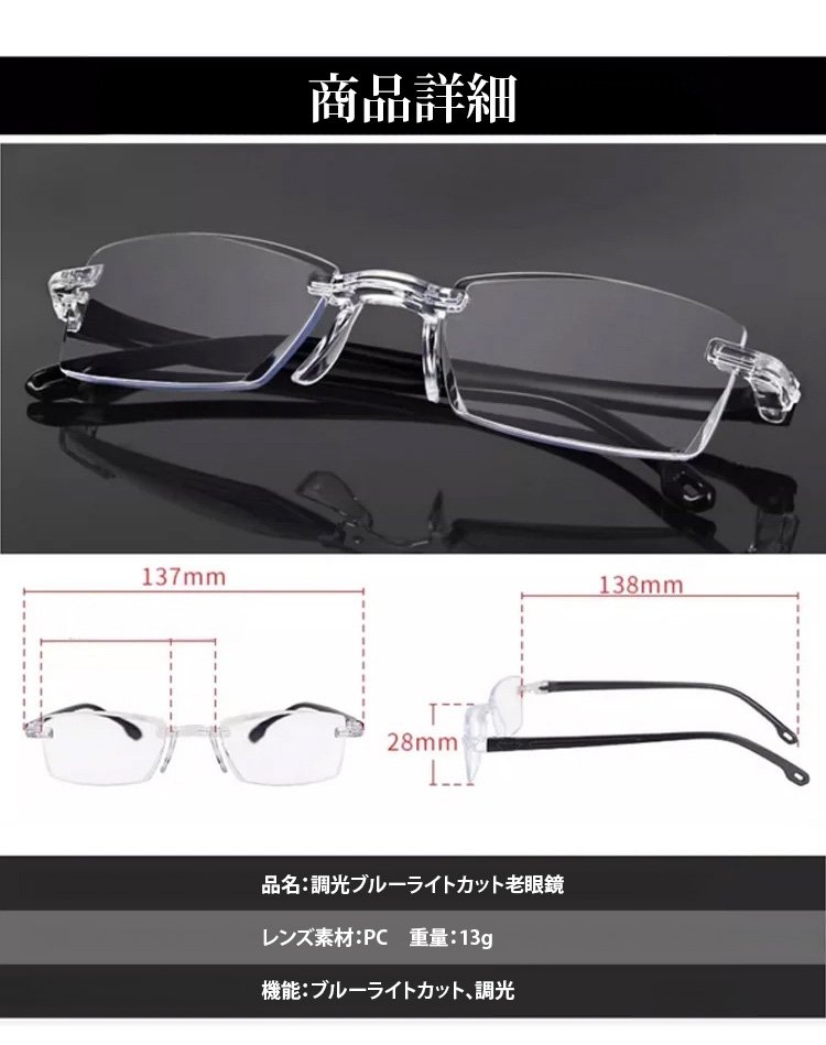 【-7から+7まで度数自動調節、生涯交換不要でお使いいただけます!】超軽量自動焦点調節ブルーライトカット老眼鏡✨近視・遠視・乱視対応