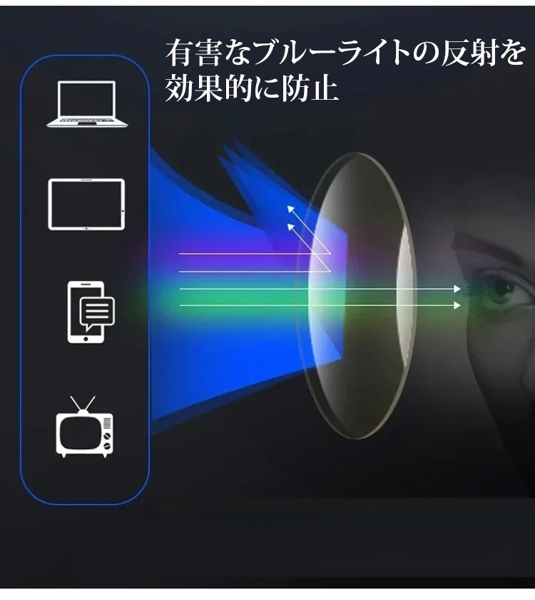 度数自動調節ブルーライトカット老眼鏡の正面画像