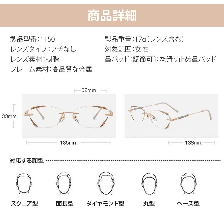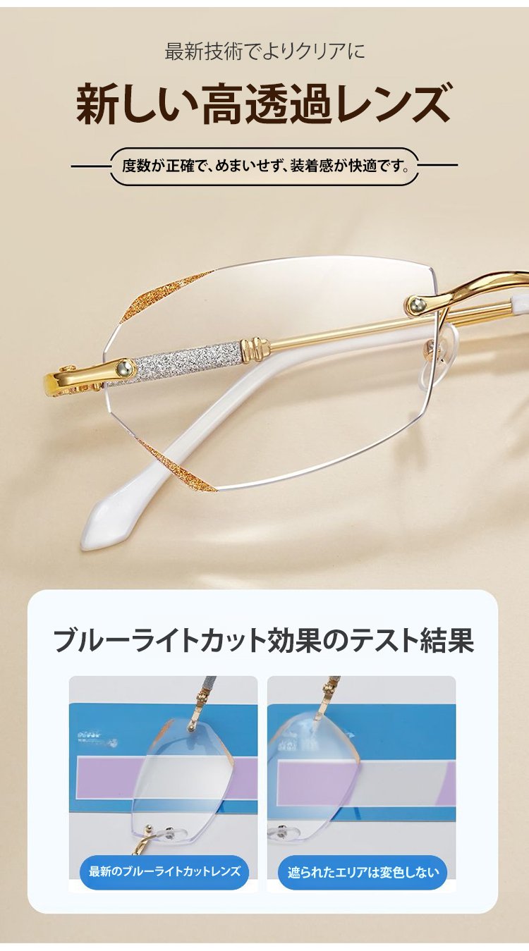 きらめくおしゃれな老眼鏡フチなし